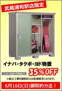 父の日イベントといたしましてイナバ・タクボ・ヨド物置をメーカー希望小売価格より35%OFFにて販売しております。