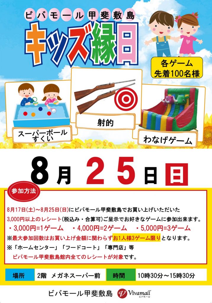 ビバモール甲斐敷島全館で8月17日(土)~25日(日)までのお買い上げレシート3,000円以上(税込・合算可)を