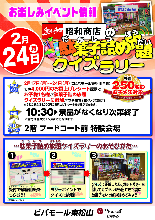 駄菓子詰め放題 クイズラリーを開催致します!